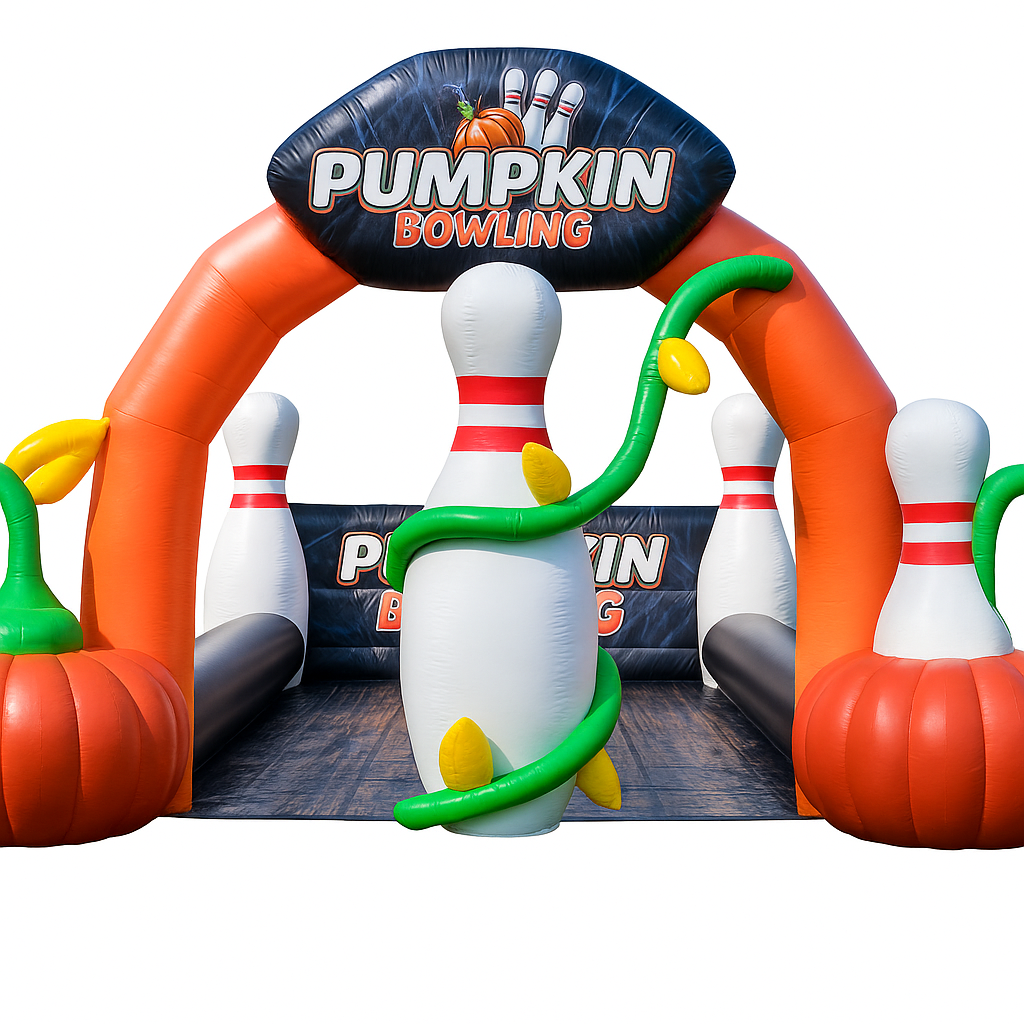 28x29x15’ Roll the giant orange pumpkin ball and try to knock down the festive pumpkin bucket pins! A colorful, fall-themed game that’s fun for all ages at festivals, schools, and parties.